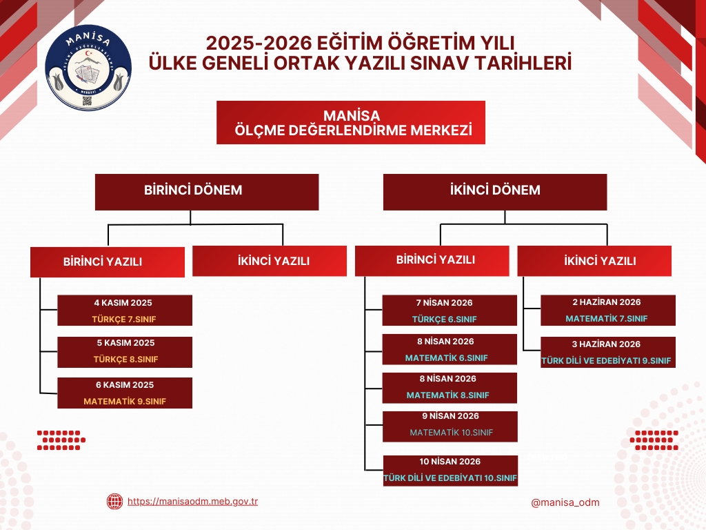 2025-2026 eğitim öğretim yılına ilişkin belirlenen ortak yazılı sınav takvimine göre, yeni eğitim öğretim yılında 6, 7, 8, 9 ve 10. sınıf düzeylerinde ülke genelinde toplam 10 ortak yazılı sınav yapılması planlanıyor.